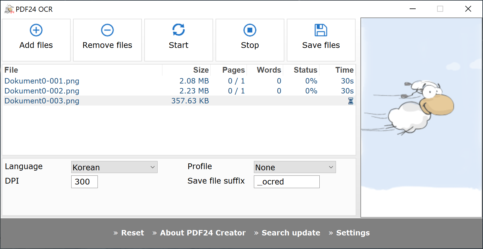 PDF24 크리에이터에는 스캔한 문서를 검색 및 편집 가능한 텍스트로 변환하는 광학 문자 인식(OCR) 기술이 포함되어 있습니다. 이 기능은 스캔한 책, 기사 또는 영수증에서 텍스트를 추출해야 할 때 매우 유용하므로 콘텐츠를 쉽게 편집하고 작업할 수 있습니다.